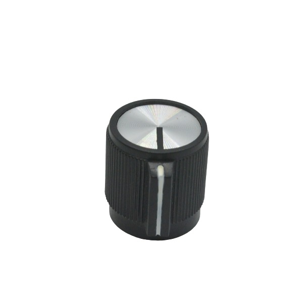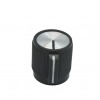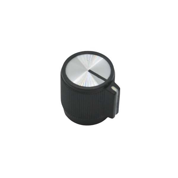 This is the same knob type used on the Moog Memorymoog, with the difference that the pointer line is painted white. It features a black body, silver face and white indicator line.