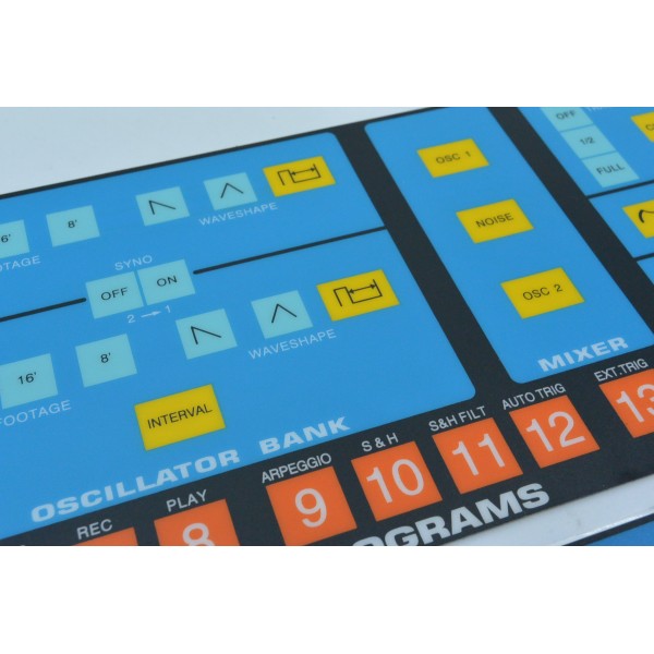 Quand les panneaux s'usent, la façade devient moins lisible et le panneau tactile principal peut devenir irrégulier ou non réactif. Ce set restaure l'implantation et les marquages d'origine pour une remise en état complète de ce Moog vintage du début des années 1980.