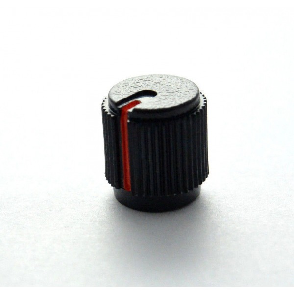 Bouton rotatif noir strié avec repère orange, au format réduit. Compatible avec axe cannelé. Présent sur TR‑808, SPV‑355, RE‑501, DR‑55, CE‑3 et bien d’autres instruments vintage Roland / BOSS.